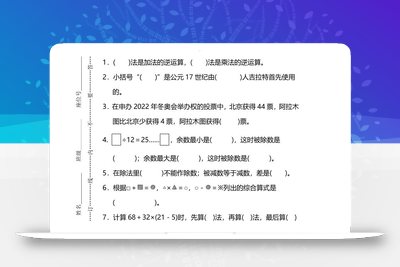 欧珂网络 数学 四下人教版数学第三单元检测卷-1 https://oukel.com/37546.html