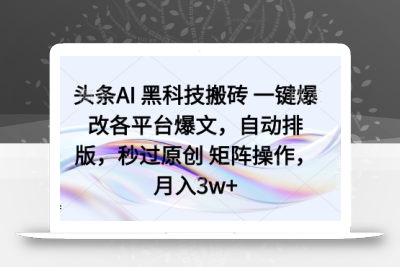 说起今日头条,其实是个老项目了,但是自从这两年AI走进我们生活中,头条的又一种暴力变现玩法被大家发掘了出来。