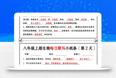 八年级上册生物每日默写小纸条【空白版】