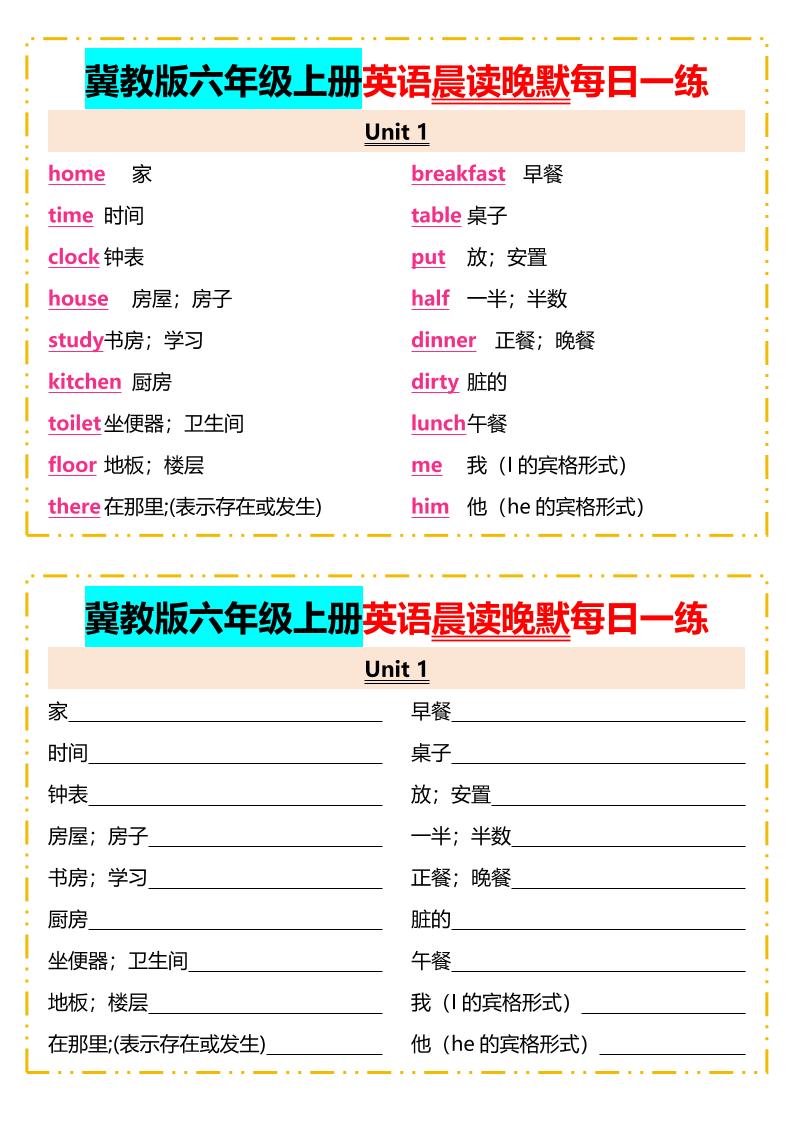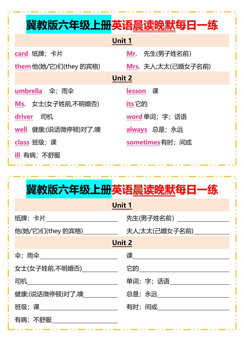 欧珂网络 英语 2025年秋冀教版六年级上册英语晨读晚默每日一练 https://oukel.com/75980.html