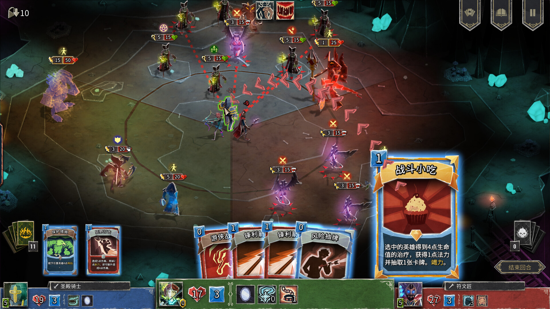 想象你手握一套专属卡组,在随机生成的地牢房间中谨慎前行,每个转角都可能遭遇凶残的恶魔军团。游戏最让人欲罢不能的就是它充满策略性的战斗系统——你需要在有限的行动点内打出最佳组合,是先用位移卡牌调整敌人站位,还是直接发动高伤害的连击?当你在恶魔包围中巧妙走位,用一套完美连招清空战场时,那种运筹帷幄的成就感简直无与伦比!