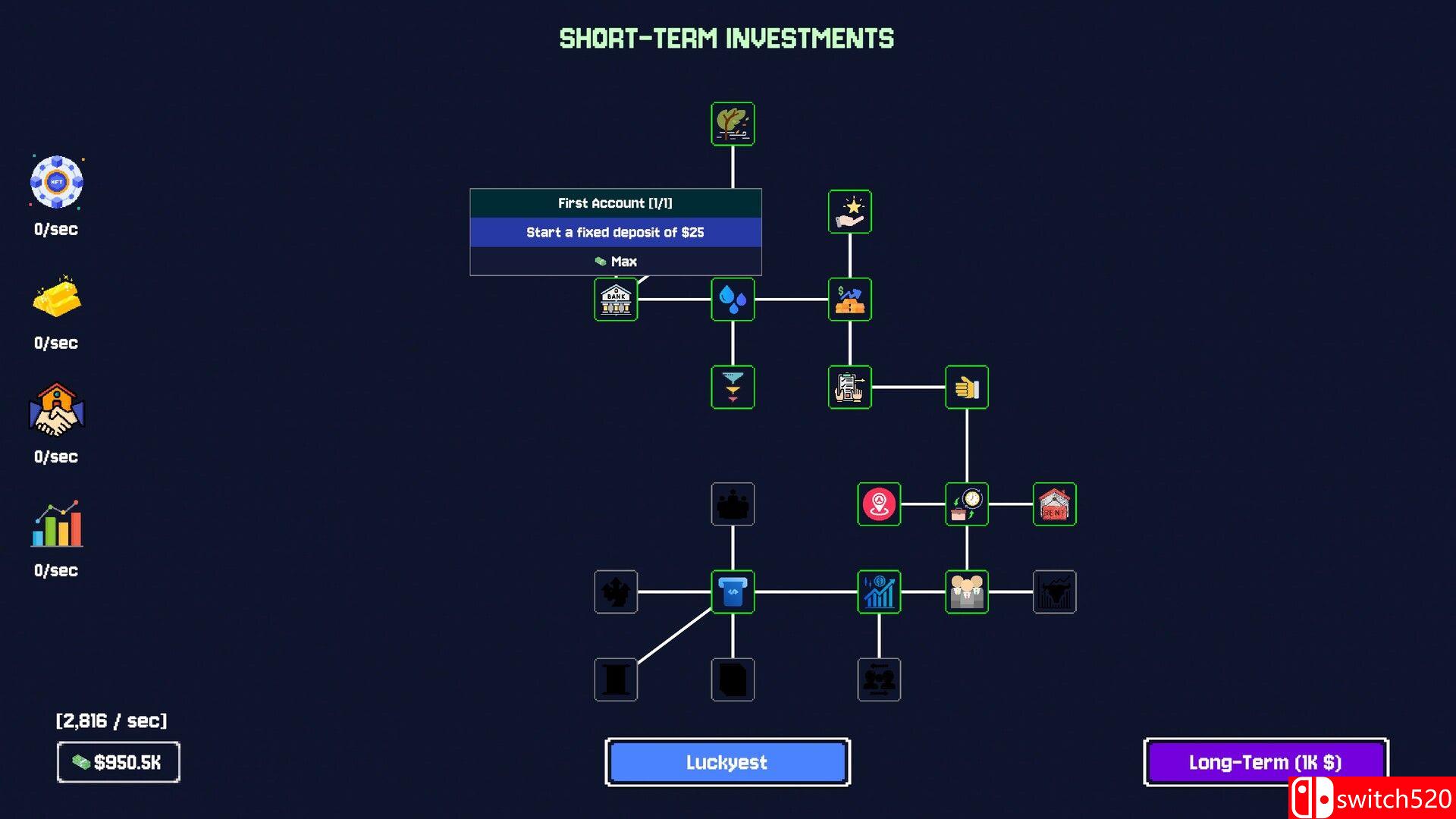《幸运至极》是一款策略类(SLG)游戏,一款节奏明快的增量式刮开揭晓游戏,核心在于复利式决策——设定下注、揭开结果、选择套现或追求更高倍率,并将收益投入永久升级,逐步加速收入并解锁全新工具。switch520